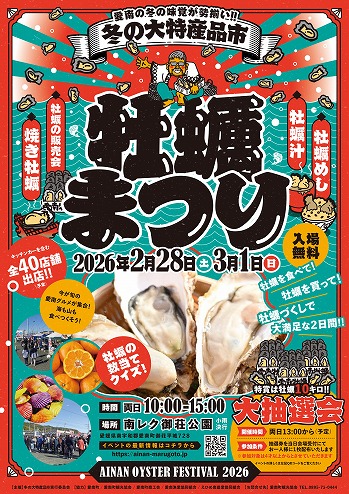 御荘湾海域での貝毒プランクトン発生の影響により開催を延期しておりました「冬の大特産品市~牡蠣まつり」につきまして、御荘湾の状況が改善されたため、開催することが決定いたしました。開催を心待ちにされていたお客様には大変お待たせして申し訳ございませんでした。是非ご家族お友達等お誘いあわせの上ご来場ください!関係者一同皆さまのご来場をお待ちいたしております😊