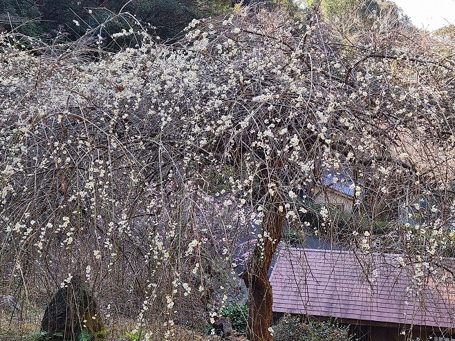 まだ咲き始めでしたが、月影という変わった品種の梅もありました。