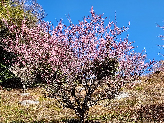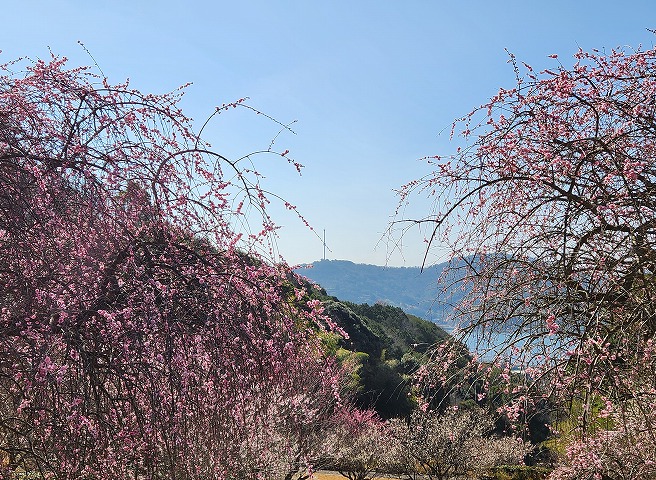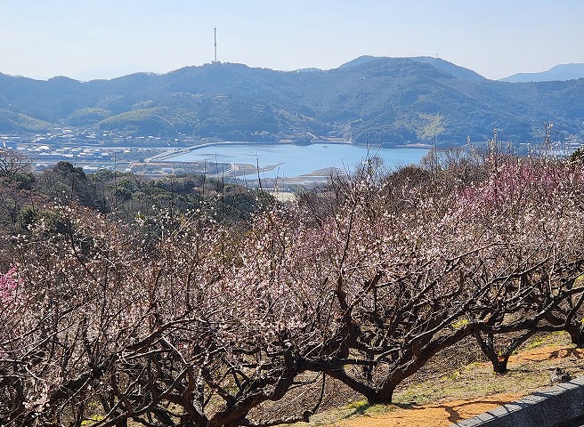 3~4分咲きで、花はまだ少し早かったですが、御荘湾を望む斜面に8,000本の南高梅の木が植えられていて上から眺める景色が素晴らしかったです!!