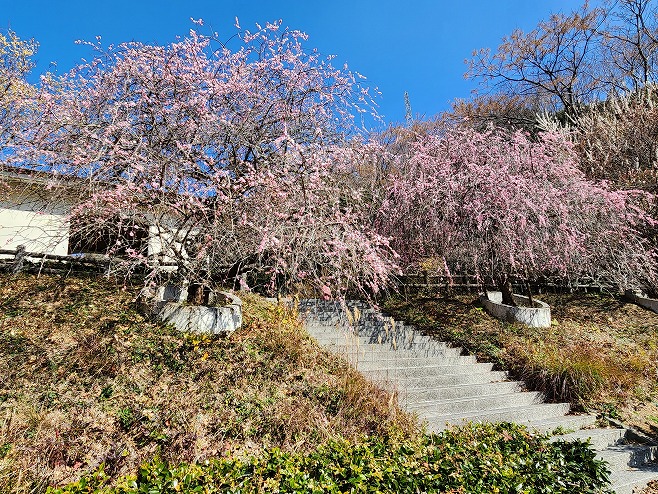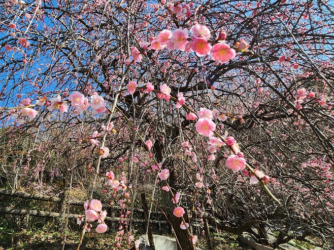 見本園の様子~ピンク・白・黄色、一重・八重咲き、しだれ咲きといろんな種類の花が咲き誇り、上品で甘い香りが辺りに広がっていました。